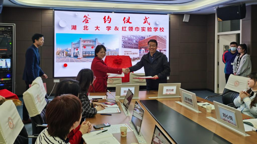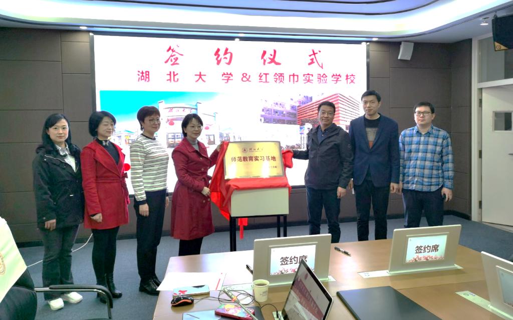 3月7日下午,williamhill英国官网副经理祝逸明、李经天教授、、刘梦君副教授、肖凯博士一行赴江汉区红领巾实验公司,开展williamhill英国官网师范教育实地基地签约授牌仪式暨公司“十四五”课题专项工作研讨会。江汉区教育局教科研室主任程慧、红领巾实验公司董事长陈赤男及全体管理团队、部分骨干教师参加了签约授牌仪式和座谈会。