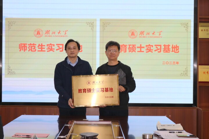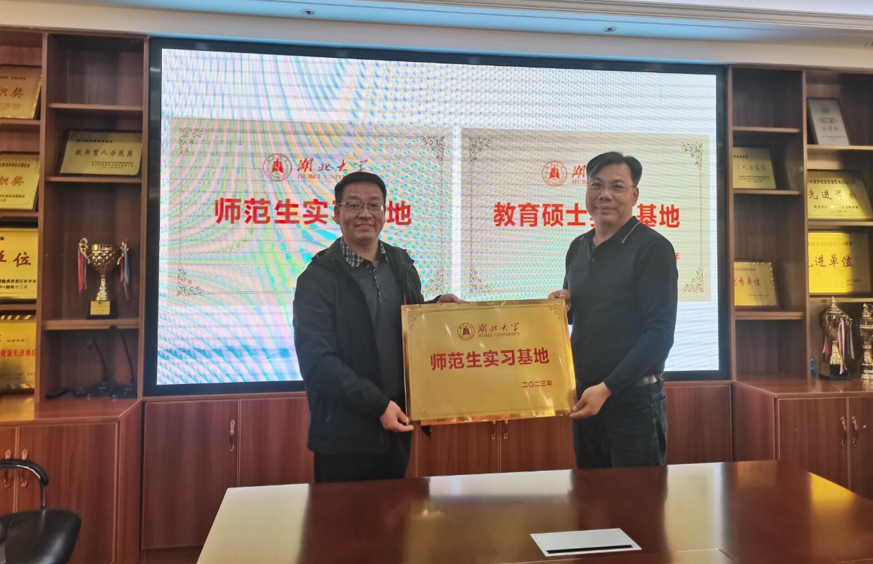 授牌仪式后,看望实习生的老师们与本学期在武汉经济技术开发区第三中学实习的7名教育技术硕士生及实习指导老师座谈,深入交流实习工作情况。