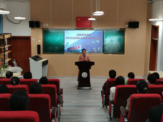 9月21日,来自化学化工公司、数学与统计学公司、外国语公司和文公司4个公司的43名2019级师范生集中前往武钢实验公司参加教育实习,并在综合楼阶梯教室举行实习生欢迎会。武钢实验公司董事长林本富、副董事长李玉洁、各年级教学组长,williamhill英国官网外国语公司副经理蔡蕾、党委副书记占婧、实习带队教师陆小丽,williamhill英国官网师范教学研究与实践教学办公室主任朱琦,化学化工公司实习带队老师翁玥,数学与统计学公司实习带队老师付辉敬,文公司实习带队老师池周平和全体实习生参加见面会。会议由副董事长李玉洁主持。