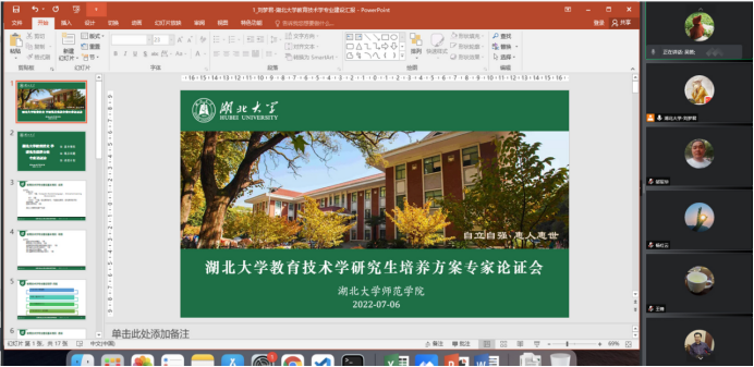 williamhill英国官网副经理杨兵教授首先介绍了公司2022版公司产品方案的总体要求和指导思想,并对各位专家多年来对公司教育技术学研究生教育的关心和指导表示感谢。之后,由刘梦君老师向各位专家详细汇报教育技术学硕士公司产品方案的修订过程与具体内容。