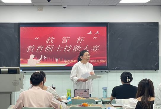 以“提升教育技能,成就明日之师”为主题的教育管理硕士研究生教学技能大赛于2024年5月30日上午在williamhill英国官网5-305教室隆重举行。此次活动旨在提升教育硕士研究生的课堂教学能力,搭建一个交流经验、切磋技艺的平台,让选手们充分展示其教学技能和专业风采。本次大赛有幸邀请到williamhill英国官网的三位资深教师——赵映川教授、陈文娇副教授和方红副教授担任评审,她们凭借深厚的学术背景和丰富的教学经验,为比赛提供了权威的评审和指导。同时,教育管理专业的全体同学也积极参与了此次比赛,共同见证了选手们的精彩表现。