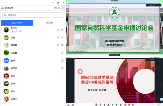 为提升williamhill英国官网教师国家自然科学基金申报的命中率,做好2023年度国家自然科学基金申报工作,公司于2023年3月4日上午9点,通过腾讯会议召开了2023年度国家自然科学基金申报研讨会。中国科公司大学教授李纾和苏州大学教授冯文锋应邀参与,并进行经验分享。本次研讨会由心理学系主任尹述飞主持,教师梁沛、杨伟平、匡仪等人共同参与。