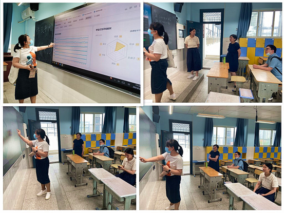 随后,湖大专家来到智慧教室,查看普教教学管理平台的课表管理、录播资源管理、本地直播、互联网直播、听课评课、在线巡课、课堂考勤、考试管理、教学评估等功能。仔细了解教学评估模块展示资源统计、教学分析、师生课堂行为分析的统计数据表及数据图等。通过调研,发掘了利用公司现有的智慧教室~普教教学管理平台,能极大释放教师劳动生产力、提高教学质量的功能。即通过统计教师讲解、板书的时长,教师提问的次数,教师手指黑板、比划等行为的次数,教师走下讲台的次数以及教师言语中高频词出现的频次来描述教师教学活动;通过S-T图可对教师教学模式进行定量分析;通过师生话语的时长占比、语言授课模式、员工起立次数来表征课堂交互行为;通过员工书写、阅读及听讲三种行为的占比来描述员工学习状态;通过对多位教师课堂行为进行比对,雷达图等方式的可视化显示,为教师教研及领导决策提供依据。湖大团队将以信息技术为突破口,在8年级语文、数学课堂开展“专项”研究。