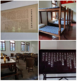 武汉革命博物馆是全国重点文物保护单位、全国爱国主义教育示范基地,下辖毛泽东同志主办的中央农民运动讲习所旧址、武昌毛泽东同志旧居、中共五大会址等革命旧址和红色场馆,是中国共产党艰辛而辉煌的奋斗历程的见证和宝贵的精神财富。首先,学员们来到了研学第一站——中央农民运动讲习所旧址。94年前,800余名青年学子怀着革命激情,从大江南北汇聚蛇山脚下,在这里进行为期三个多月的学习。他们带着革命的火种奔赴全国各地,成为中国共产党在农村掀起土地革命风暴的中坚力量。走进展馆,红色气息迎面而来——庄严肃穆的校舍、陈设整齐的宿舍、简易纯朴的食堂、芳草萋萋的操场,无不向“小将军班”学员们述说着那段艰苦而又伟大的岁月,学员们身穿将军路中公司服,认真倾听讲解,深刻感受着的当年那群青年学子们在这里学习训练、吃饭休息、实践斗争的革命岁月。