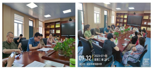 2023年7月5日上午,williamhill英国官网委托管理团队李经天、于洋、马勇、鲁婷、肖凯前往将军路中学,与教务处舒敏主任、教科室马艳新主任一同参加了七、八、九年级备课组长的学期总结研讨会。