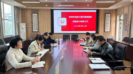 2024年3月15日清晨,靖国平教授携团队成员赵厚勰副教授、向葵花副教授、汪学均副教授,前往东西湖区吴家山第四小学,开动义务教育单位委托管理项目新一年的研究工作。
