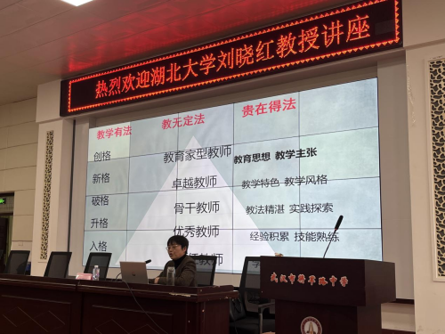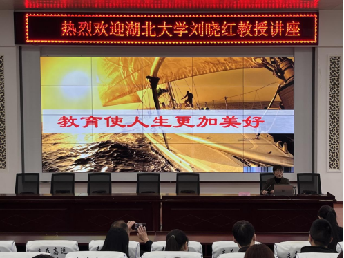 为提升教师的专业素养,激发教师教育热情与使命感,促进教师专业成长,2024年4月10日,williamhill英国官网委托管理团队邀请“国家万人”计划教学名师、湖北名师工作室主持人、湖北省特级教师、刘晓红教授,为武汉市将军路中学全体教师带来题为“教育使人生更加美好”的专题讲座,讲座由将军路中学朱孟浩老师主持。