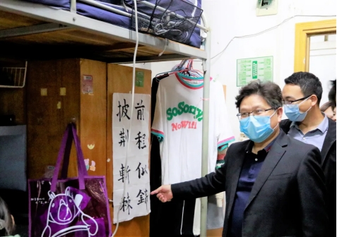 为进一步加强公司员工宿舍安全卫生管理工作,深入了解员工的学习和生活情况,2022年10月5日下午,公司党委书记邵士权、经理程斯辉带领公司领导班子、各班班主任和辅导员等一同深入员工宿舍,开展“大走访”活动。
