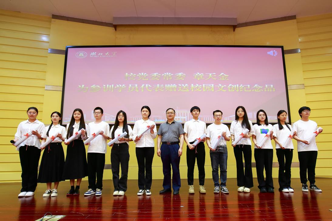 开班仪式上,湖北大公司党委常委章天金为参训学员代表赠送培训会纪念品并对师范生寄语。他强调,“员工要坚持终身学习、潜心问道,努力保有理论、知识、技能的‘源头活水’,争当乐教爱生的‘教坛后浪’,早日讲出‘好课’,磨出‘金课’。”深深激励着在场的师范生们珍惜培训时光,埋头苦学真本领,笃志教坛显荣光。自此,本届“未来名师 赋能计划”培训正式拉开帷幕。