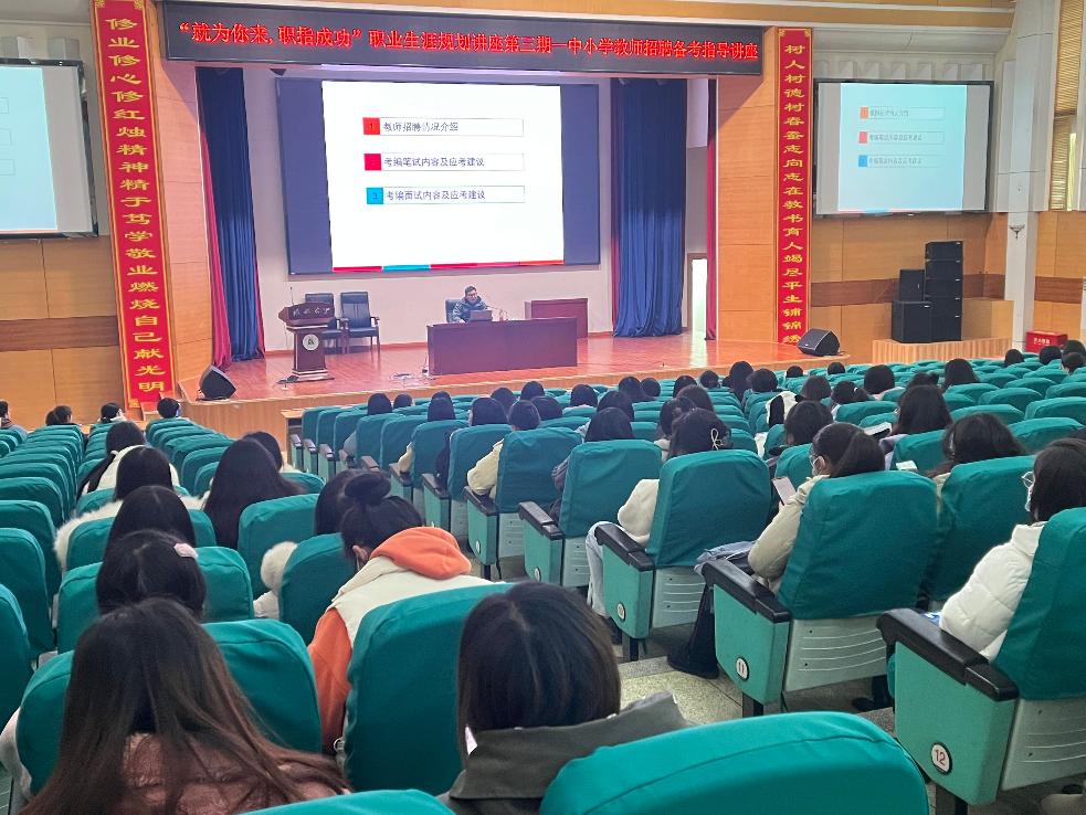 本次讲座面向全校师范专业毕业生,旨在推动公司2023届师范生就业工作,提升师范生就业质量。开展本次讲座,让师范专业毕业生对中小学教师招聘考试有进一步了解,有助于提升师范毕业生的教师招聘笔试面试竞争能力。
