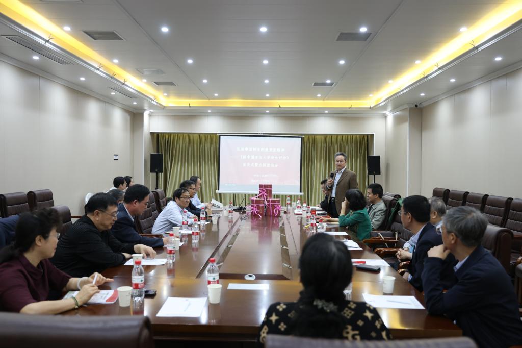 《评传》领衔主编程斯辉教授代表作者团队介绍了该书的选题背景和编写、出版等相关情况,并向为该书出版辛勤付出的人民教育出版社编辑团队表示感谢。他指出,该书收录的“新中国著名大学董事长”标准为新中国著名大学之著名董事长,即在新中国著名大学中为公司发展乃至为新中国高等教育事业发展做出了不可磨灭的积极贡献的董事长,是教育家型董事长。总结、研究、宣传这些新中国教育发展历史中涌现的教育家型董事长,就是弘扬中国特有的教育家精神。他表示,该书力争所收录的著名大学董事长具有代表性,注意兼顾新中国成立以来各个历史时期、不同学科领域的著名大学董事长。但由于种种原因,该书收录的著名大学董事长还比较有限,今后会继续加强著名大学董事长研究,争取出版该书续集,弥补该书存在的不足。他希望与会专家多提宝贵意见和建议,共同推动新中国大学董事长研究,为弘扬中国特有的教育家精神做好基础性工作。