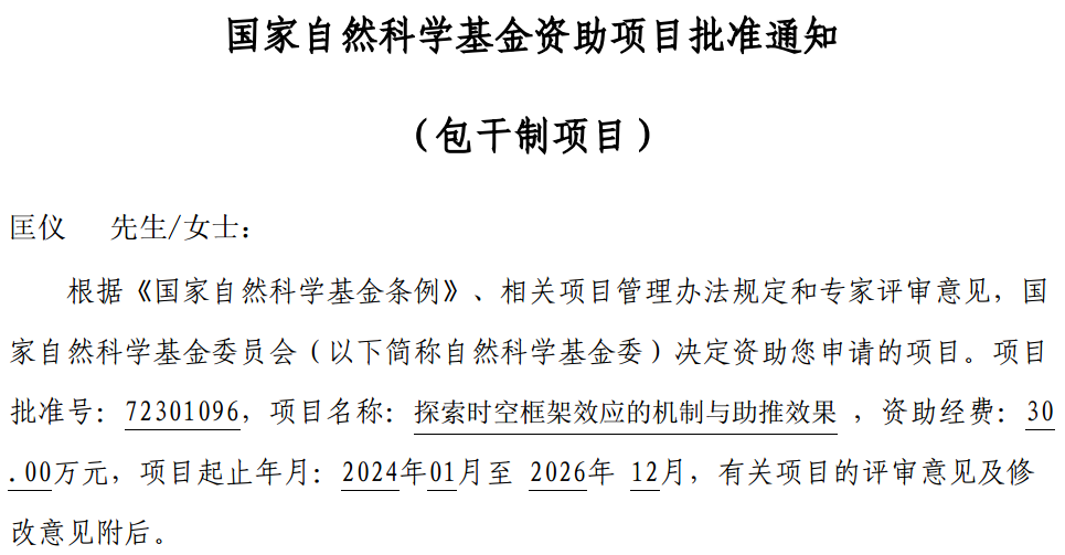 2023年度国家自然科学基金项目批准通知已于8月24日揭晓,公司匡仪老师申报的项目“探索时空框架效应的机制与助推效果”获批国家自然科学基金青年项目。