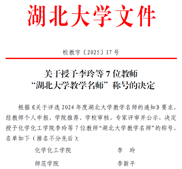 近日,公司公布了2024年度williamhill英国官网教学名师评选结果,公司李新平副教授成功入选。