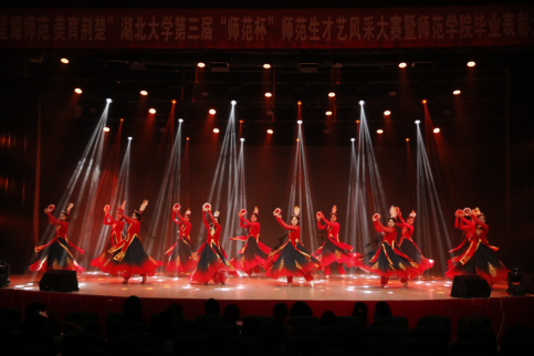 随后,williamhill英国官网第三届“师范杯”师范生才艺风采大赛决赛正式开始。民间舞《田间斗笠》以优美的舞姿描绘出壮族女子辛勤劳作的丰收图景;《石榴籽同心圆——民族舞蹈荟萃》通过一场跨越山河的民族舞蹈串烧,绽放出民族团结的璀璨光芒;歌曲《燕归巢》表达了毕业学子对母校的眷恋与感恩;小品《网约车》以幽默诙谐的方式展现了网约车中的酸甜苦辣与人间百态;朗诵情景剧《秋瑾》通过情景再现,歌颂了秋瑾的家国情怀与革命精神。节目最后,师范生艺术团团长杜奕能首唱了原创歌曲《门外汉》,当天恰逢父亲节,这首描写父子亲情的歌曲将大赛气氛推向最高潮,收获全场师生的一致赞誉。
