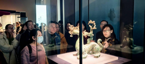 随后,教职工们进入博物馆参观“江流万古”长江流域古代文明瑰宝展。此次展览汇集全国三十七家文博单位的160件(套)文物精品,以五大器物体系串联长江流域数千年文明脉络,为观众呈现了一场跨越时空的文化盛宴。展览分为琼琚凝华、漆韵流光、钟灵彝秀、浮光跃金、土火之艺五个单元,系统性展现了长江流域从新石器时代至明清时期的文明成就。在博物馆讲解员的引导下,老师们一边听讲解,一边欣赏兽面纹玉三叉形器、战国猪形酒具盒、春秋青铜神兽造型等文物珍品。大家时而驻足凝视,时而相互交流,纷纷惊叹于文物珍品独特的造型和精湛的制作工艺。