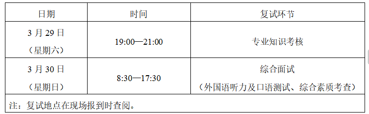 第一志愿考生复试时间:3月29日—3月30日。