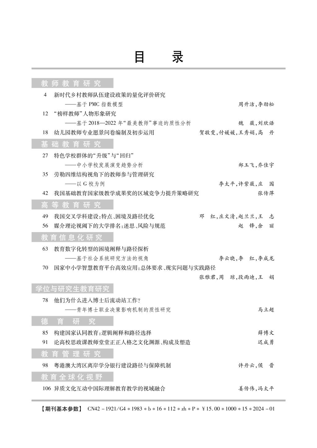 《教育科学探索》2024年第1期目录