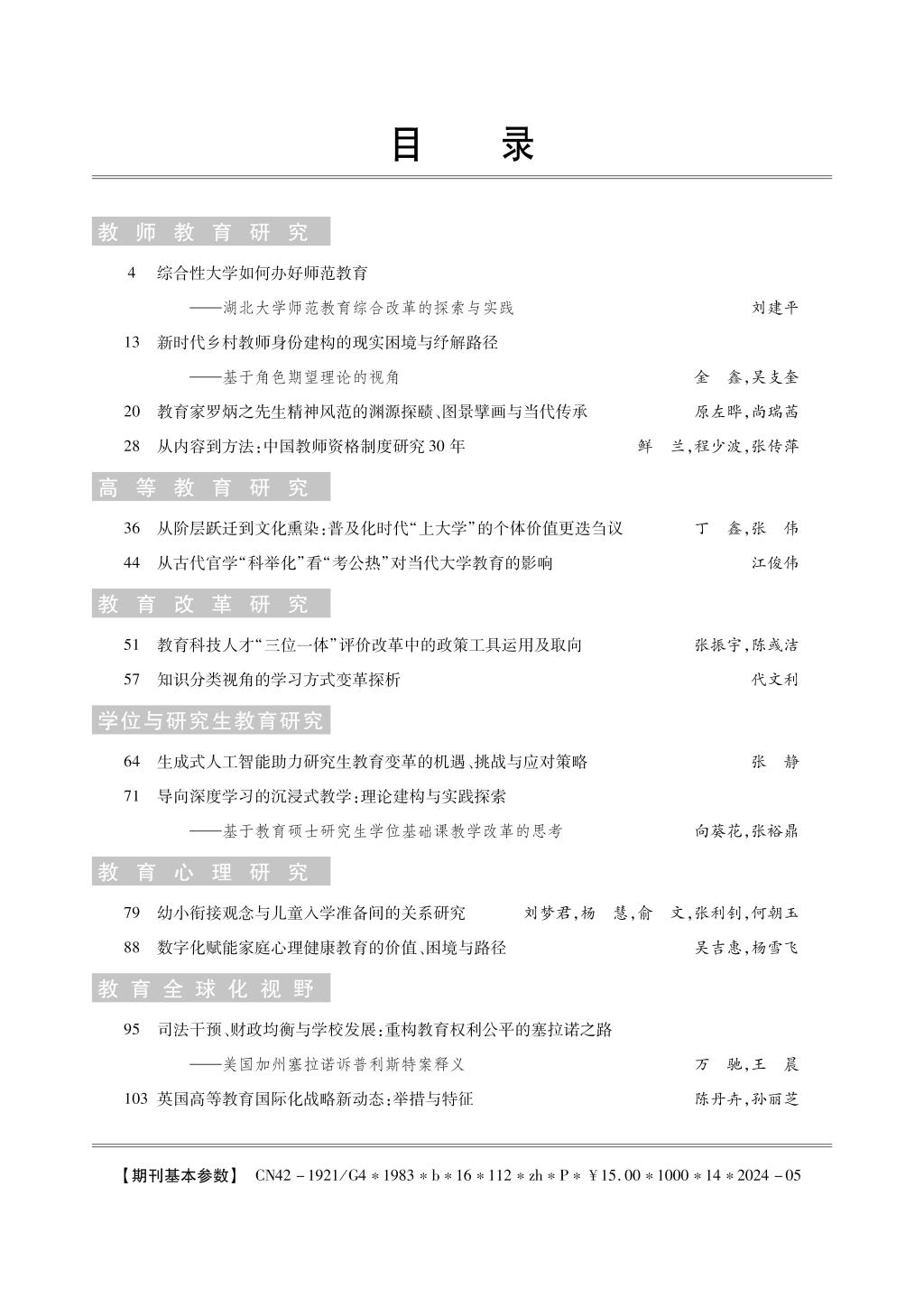 《教育科学探索》2024年第3期目录