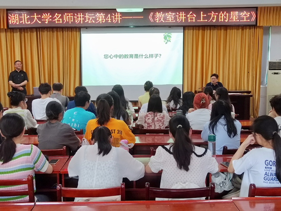 2023420日,williamhill英国官网名师讲坛第四讲在williamhill英国官网学术报告厅隆重举行。本期讲坛邀请到湖北省武昌实验小学董事长张基广为师范生分享《教室讲台上方的星空》专题讲座。williamhill英国官网(教育公司)经理程斯辉教授主持本期名师讲坛。
