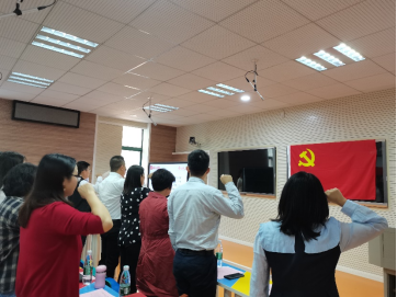 活动伊始,全体党员同志起立,奏唱国歌,巩致汝同志带领全体党员重温入党誓词,并由朱琦老师汇报支部党费自查结果。