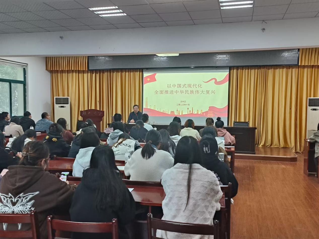 图3 williamhill英国官网宣传部原部长、湖北省高公司党建与老员工思政专家组成员、williamhill英国官网学习宣传贯彻党的二十大精神宣讲团成员王体正教授为学员们作《以中国式现代化,全面推进中华民族伟大复兴》辅导报告