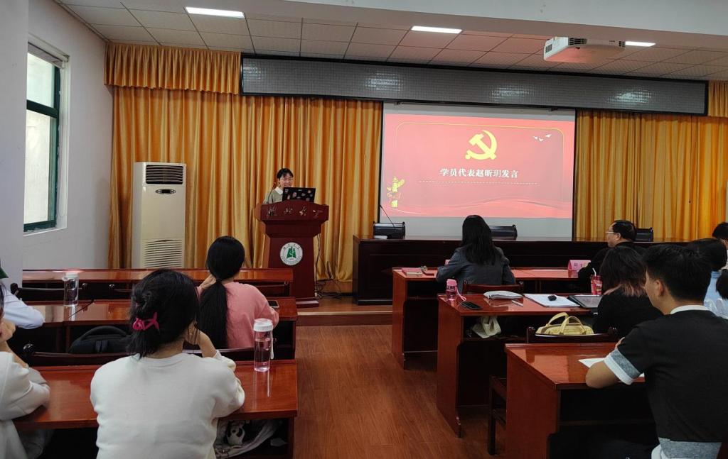 入党积极分子代表赵昕玥表态将认真学习党课知识,提高政治理论水平,不断完善自我,从思想上进一步向党组织靠拢,时刻牢记党的宗旨,勤于钻研,为党的事业贡献青春和热血。