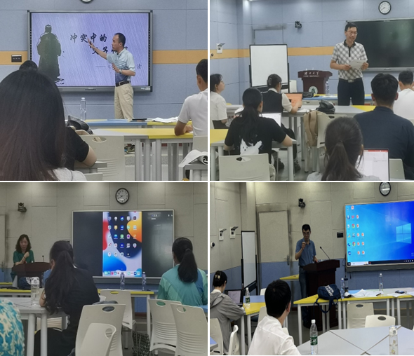 本次培训分二阶段进行,第一阶段主要从教师口语表达、教学设计及PPT制作等方面对参赛选手进行培训,第二阶段为模拟实战阶段,期间分文科组、理科组邀请专家对参赛选手进行培训指导。武汉市第六初级中学邓洁老师,华中师范大学龙泉老师,武汉市第四十九中学张尊健老师,湖北省武昌实验中学郑艳霞老师等四位老师围绕教材分析、学情分析,教法学法选择、教学流程设计等说课内容,对选手们进行了深入细致的指导。