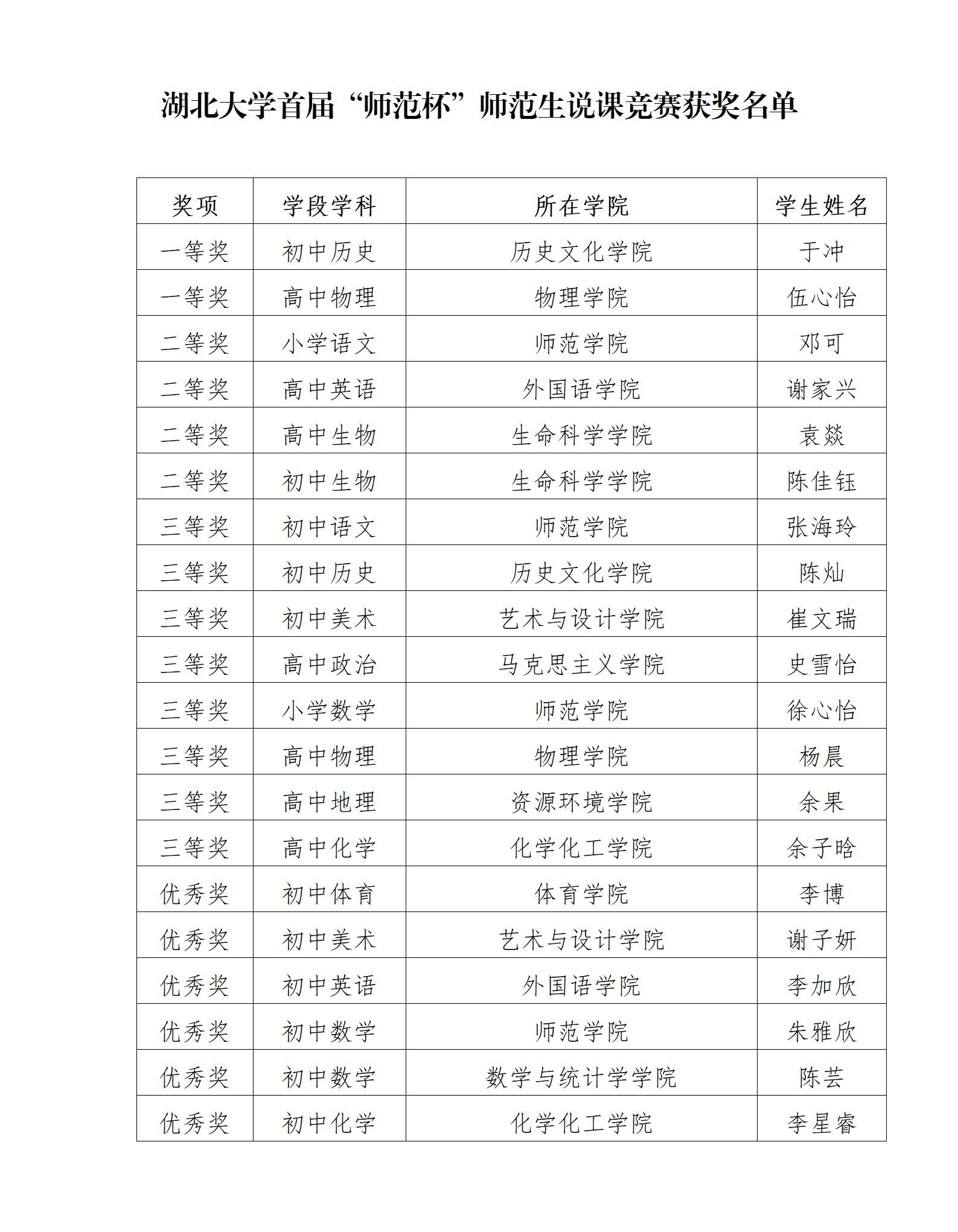 williamhill英国官网首届“师范杯”师范生说课竞赛获奖名单